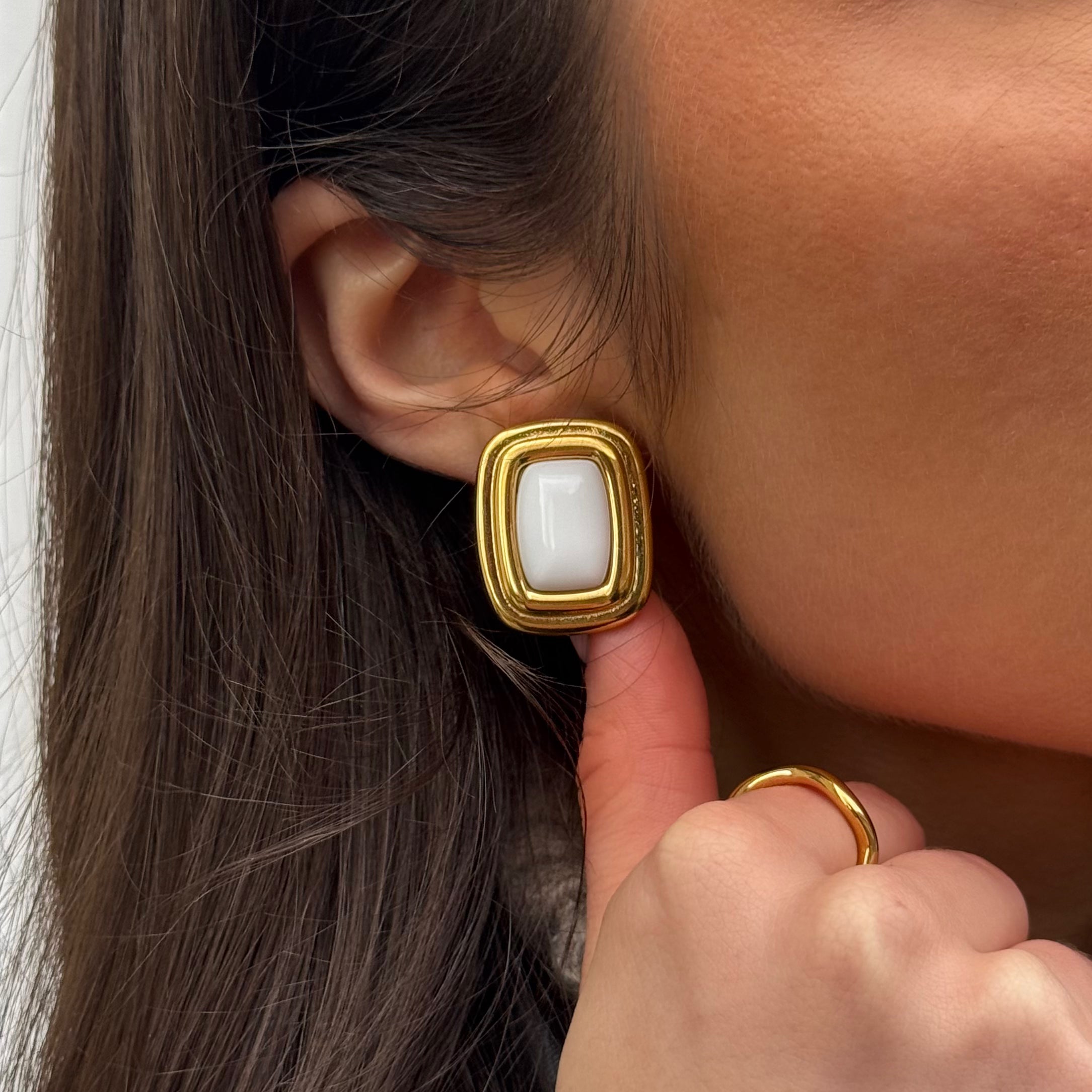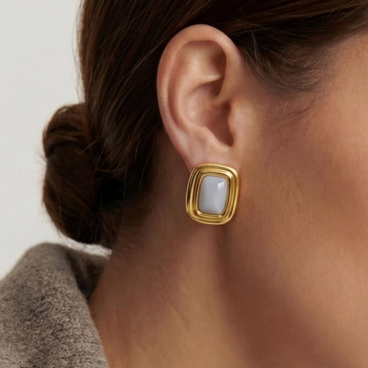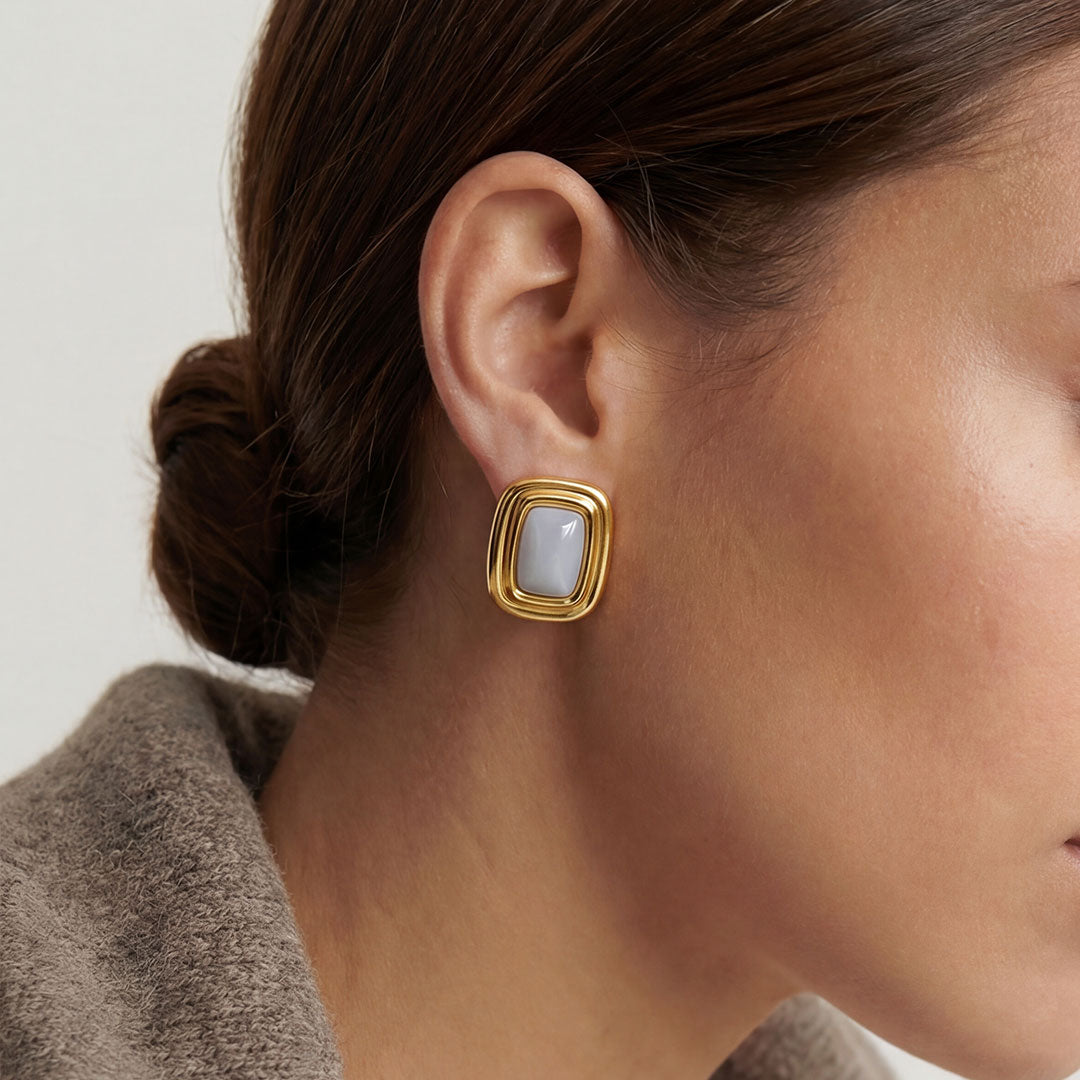 Soft Vintage pairs a soft white gemstone with a rounded vintage frame. Designed for daily wear, they slot effortlessly into a neutral wardrobe, adding light contrast to simple looks.