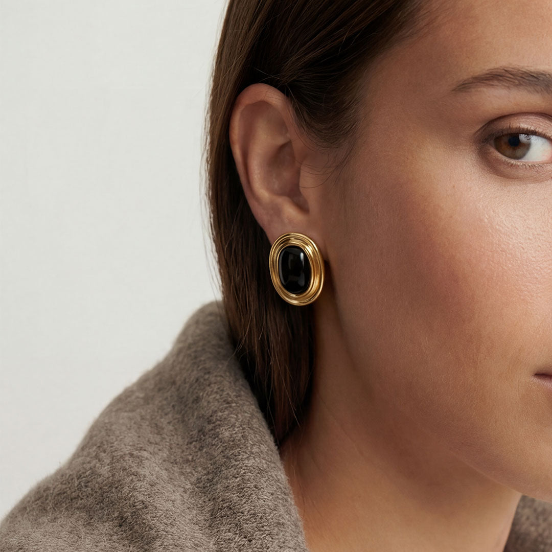 Minimal yet refined, Everyday Vintage pairs a deep black gemstone with a rounded vintage-style frame. Designed for daily wear, they add subtle contrast to a considered, neutral look.