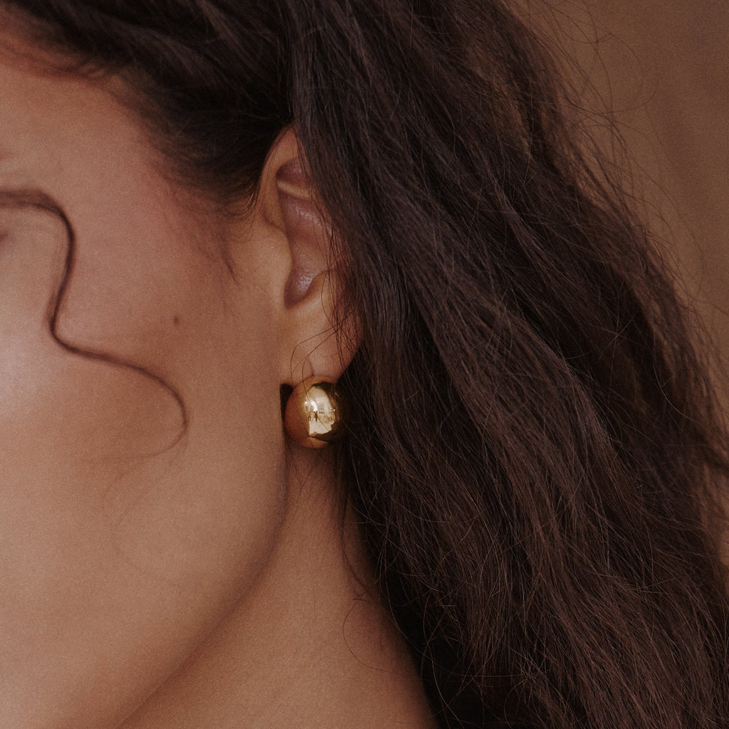 A little statement that goes with everything. The Mini Bulb Earring features a smooth, rounded silhouette that catches the light beautifully. Chic, lightweight, and made for everyday wear, because subtle can still stand out.